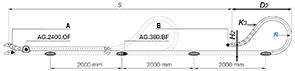 Serie 2400AG - catena, apertura a scatto lungo il raggio interno