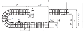 Qui è possibile configurare individualmente il sistema di catene portacavi. Tutti gli inserimenti e le modifiche vengono aggiunti all'elenco dei pezzi, che si trova a fine pagina.