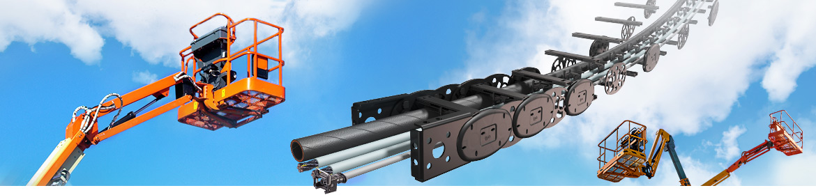 Le piattaforme di lavoro telescopiche e gli autocestelli offrono uno spazio ridotto per l'alimentazione di energia, così gli utenti preferiscono utilizzare le catene portacavi in materie plastiche ad alte prestazioni o le catene portacavi ibride in plastica e acciaio di igus per proteggere i loro cavi e tubi sovraccaricati.
