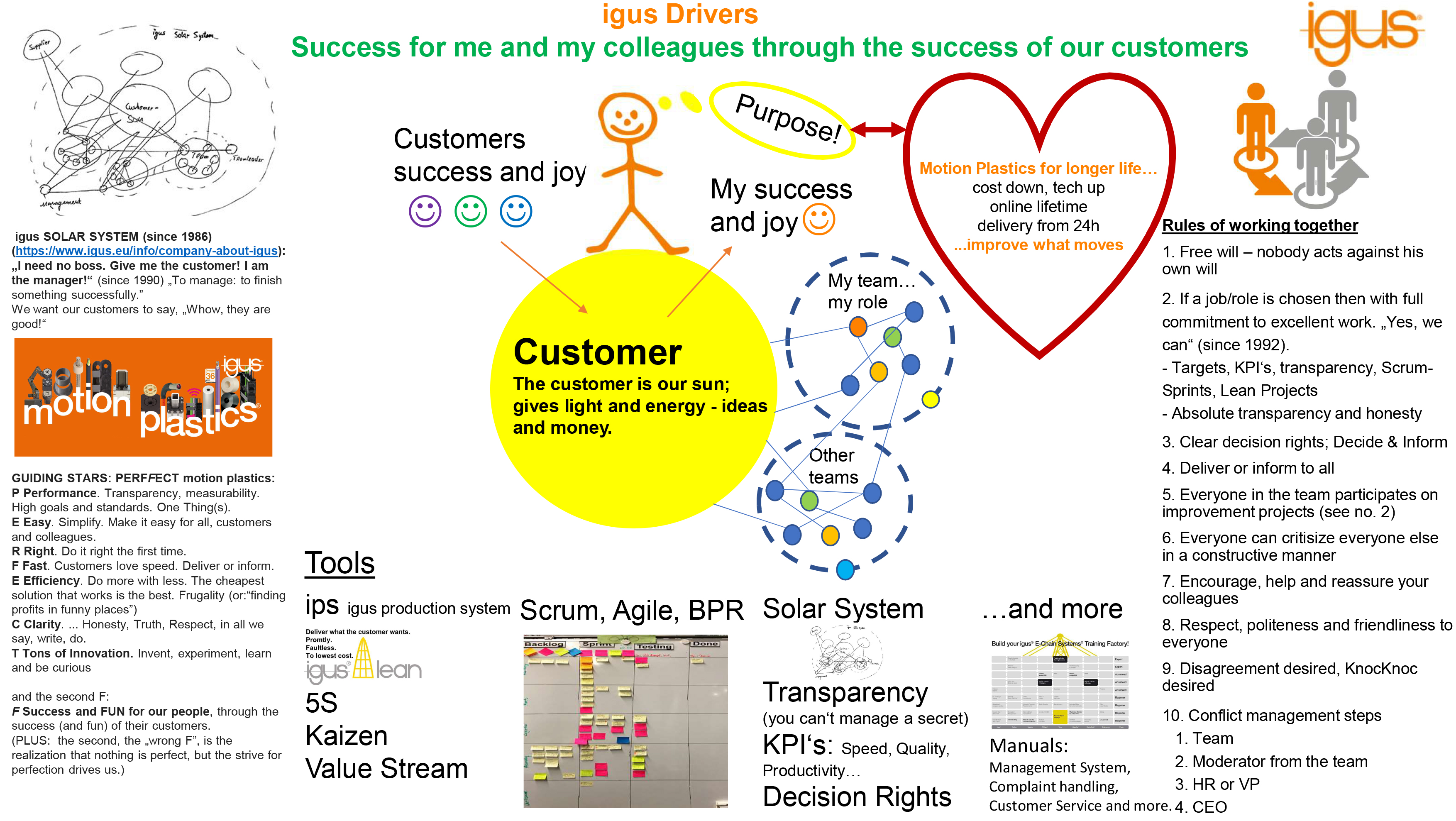 In igus, il cliente è al centro di ogni attività. per noi, il cliente è importante come il sole è necessario per la vita sulla Terra: è fonte di luce, calore ed energia. Il cliente ci da idee e lavoro e ci permette di crescere e di progredire. Il "sistema solare igus" è radicato molto profondamente nella nostra filosofia aziendale. I dipendenti e i vari team di lavoro ruotano attorno al cliente come i pianeti attorno al sole, lo ascoltano per capire le sue esigenze e cercano soluzioni ai suoi problemi. Se il cliente è soddisfatto, anche noi lo siamo.